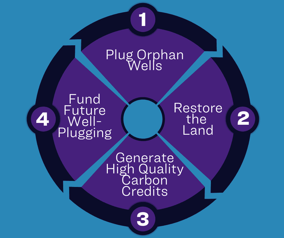 Co-benefits are ways to describe additional environmental and community benefits that arise from the original carbon project. Co-benefits of the Rebellion method of plugging orphan oil and gas wells include environmental and community benefits such as regenerating the surrounding land bases, restoring spoiled ecosystems and returning the land to its original, natural state.