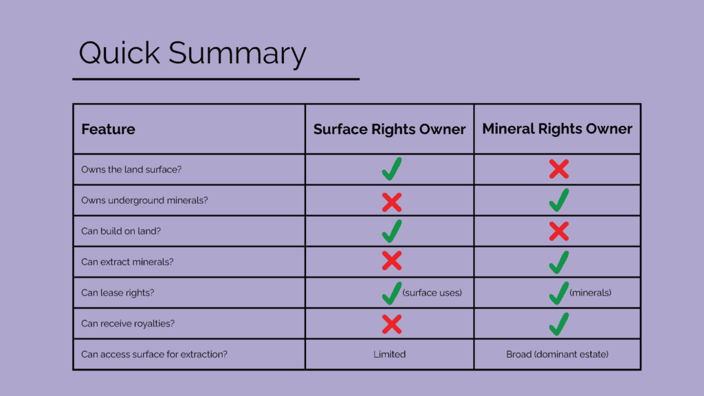 The Surface Rights Owner does NOT automatically own what is below the ground.